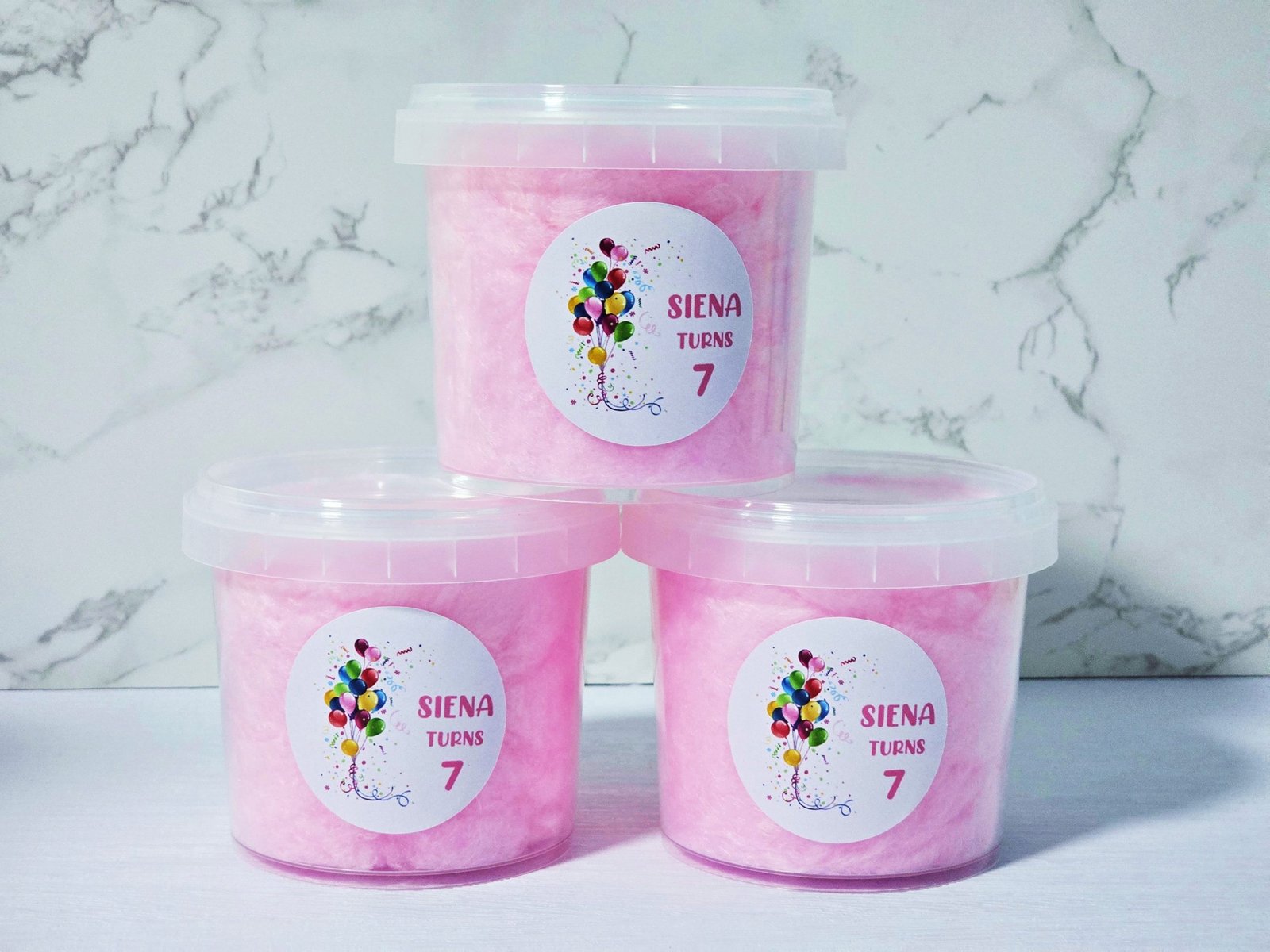 Our Personalised Fairy Floss Party Favour tubs are a fun, sweet and delicious party favour, perfect for adding a special touch to any celebration. Light, fluffy and beautifully presented, each tub is filled with soft fairy floss and finished with a personalised label to match your theme. They’re part of our popular , loved by kids and guests of all ages.