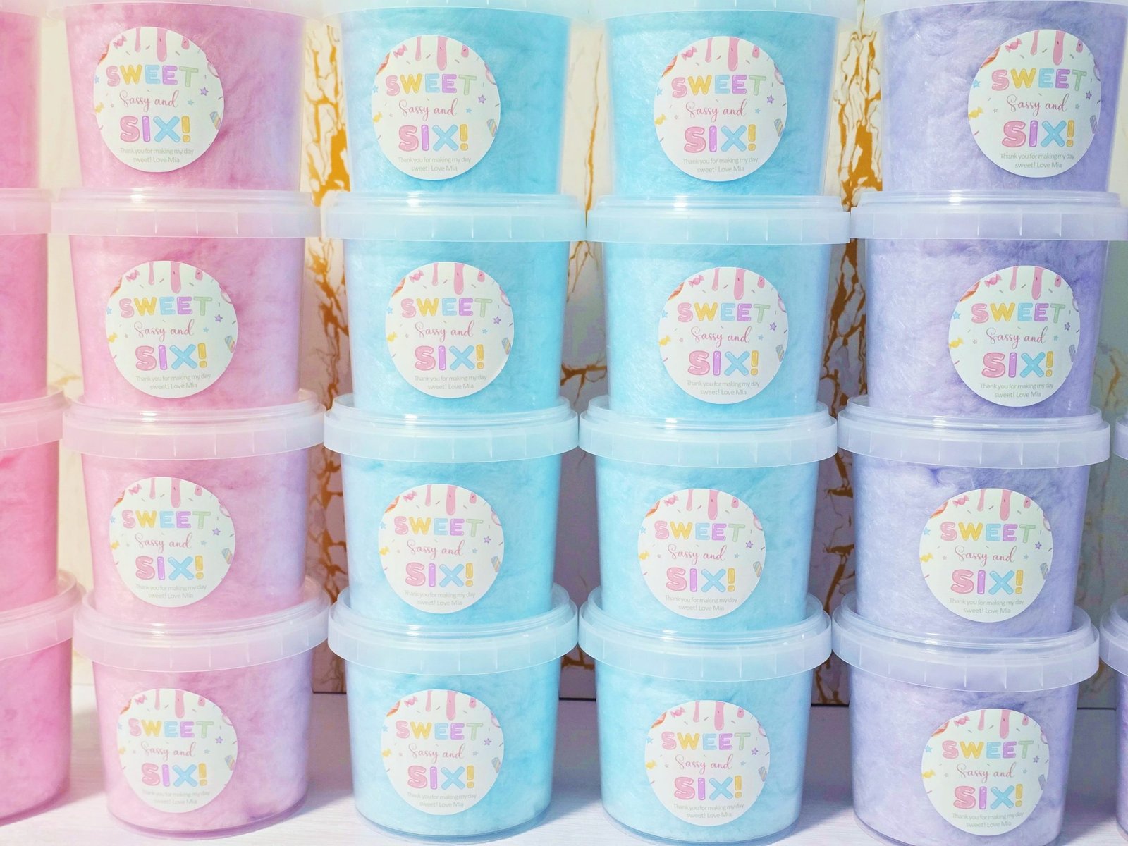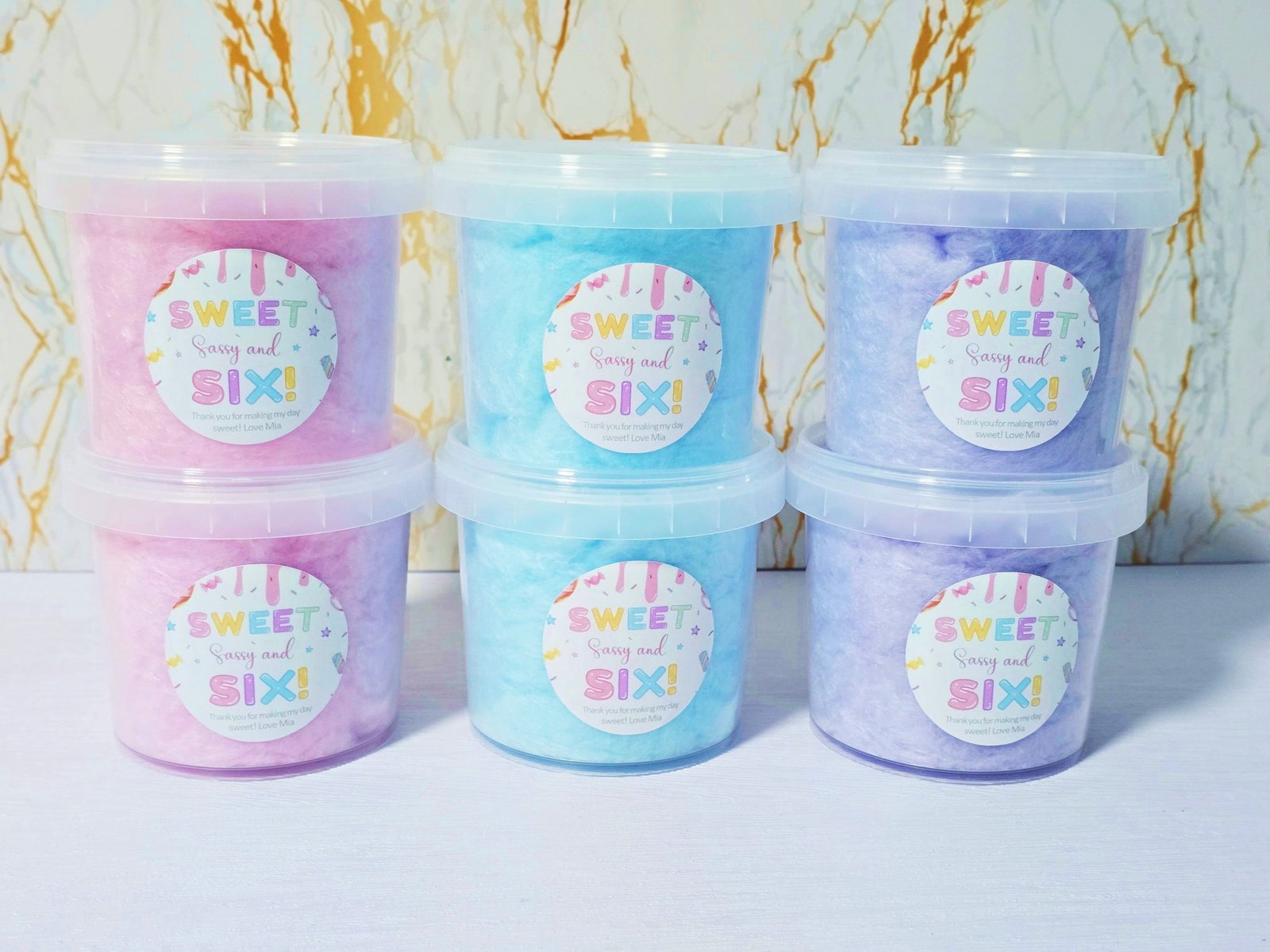 Our Personalised Fairy Floss Party Favour tubs are a fun, sweet and delicious party favour, perfect for adding a special touch to any celebration. Light, fluffy and beautifully presented, each tub is filled with soft fairy floss and finished with a personalised label to match your theme. They’re part of our popular , loved by kids and guests of all ages.