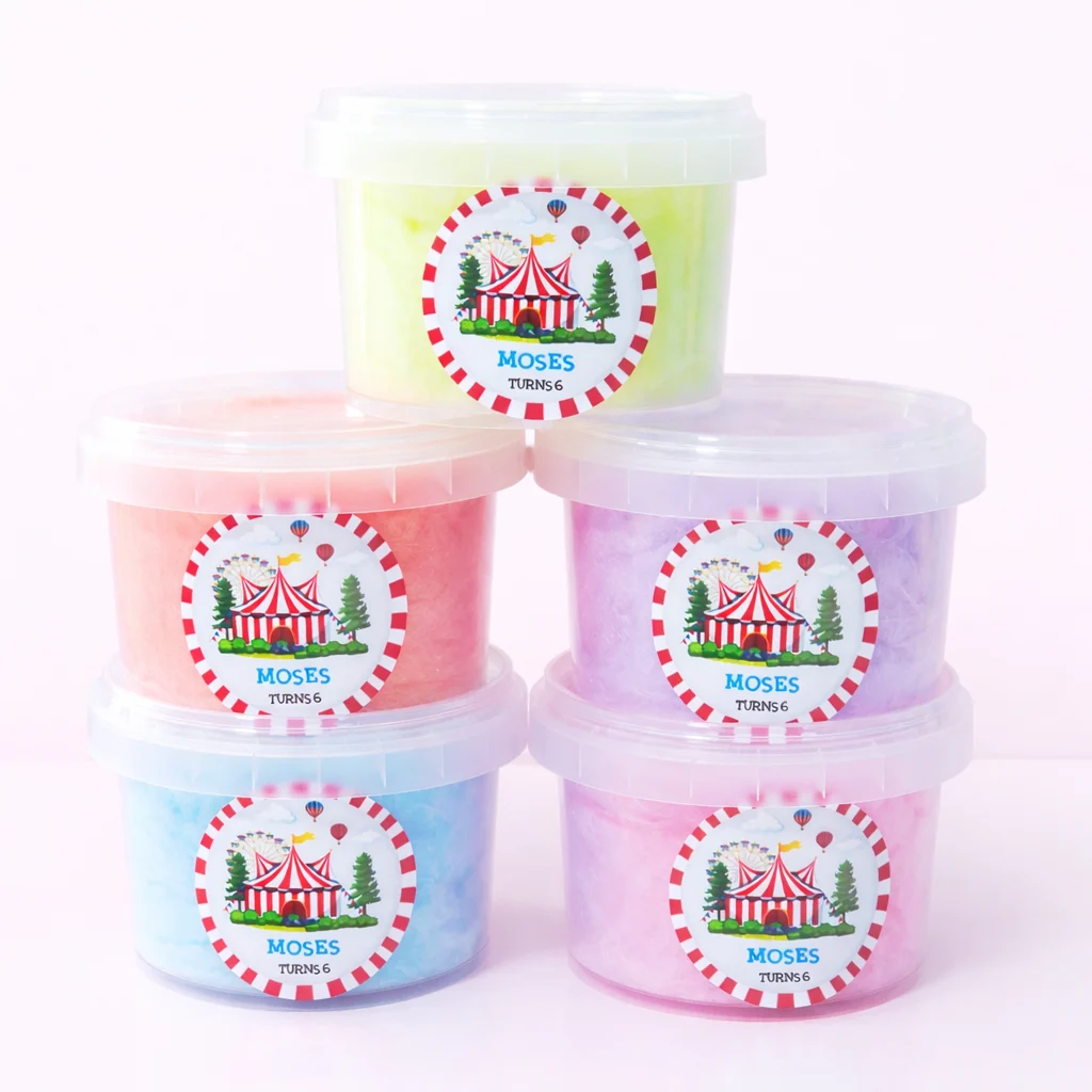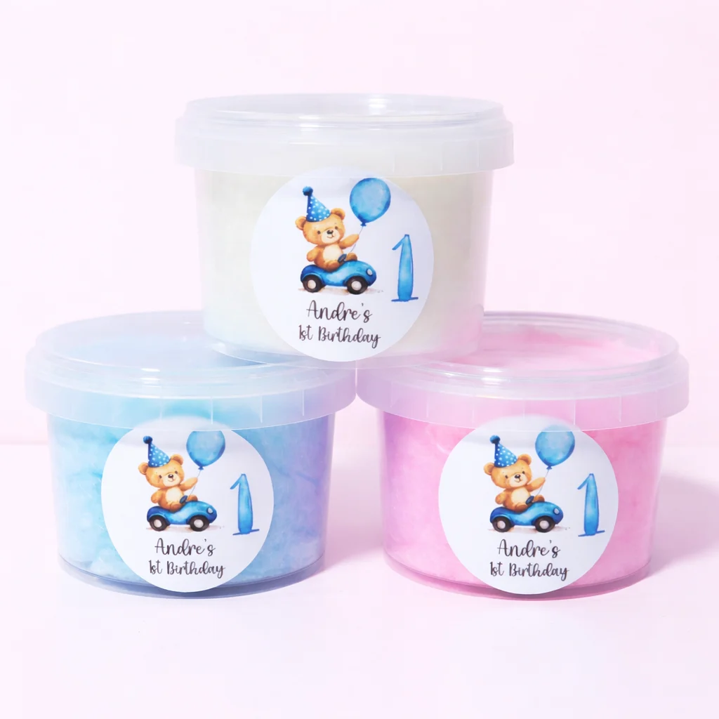 Simply choose your preferred fairy floss tub, then add your name, age, theme, event details or branding requirements at checkout. Our team will design the label to match your event or theme.