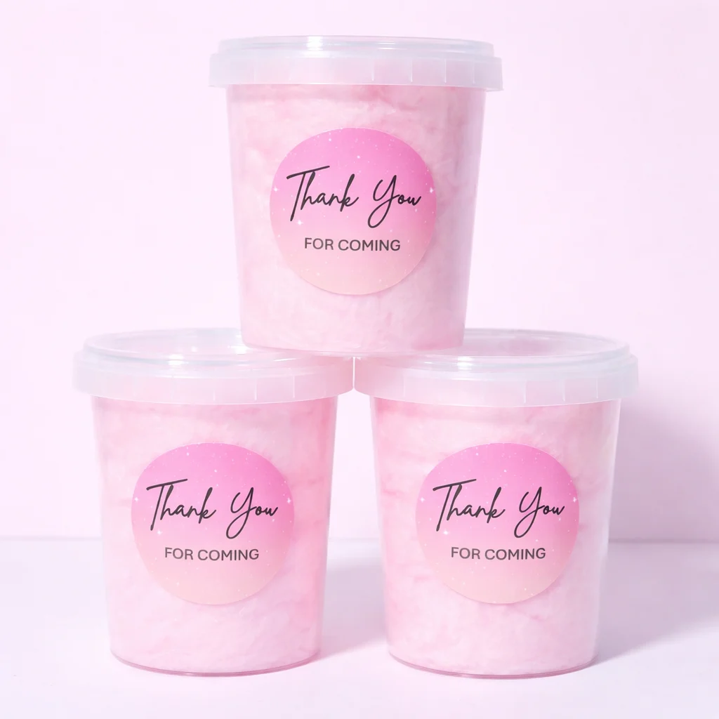 Looking for personalised fairy floss tubs for your event? Our fairy floss tubs are made fresh to order and come with a personalised label, creating a fun and colourful treat your guests will enjoy.