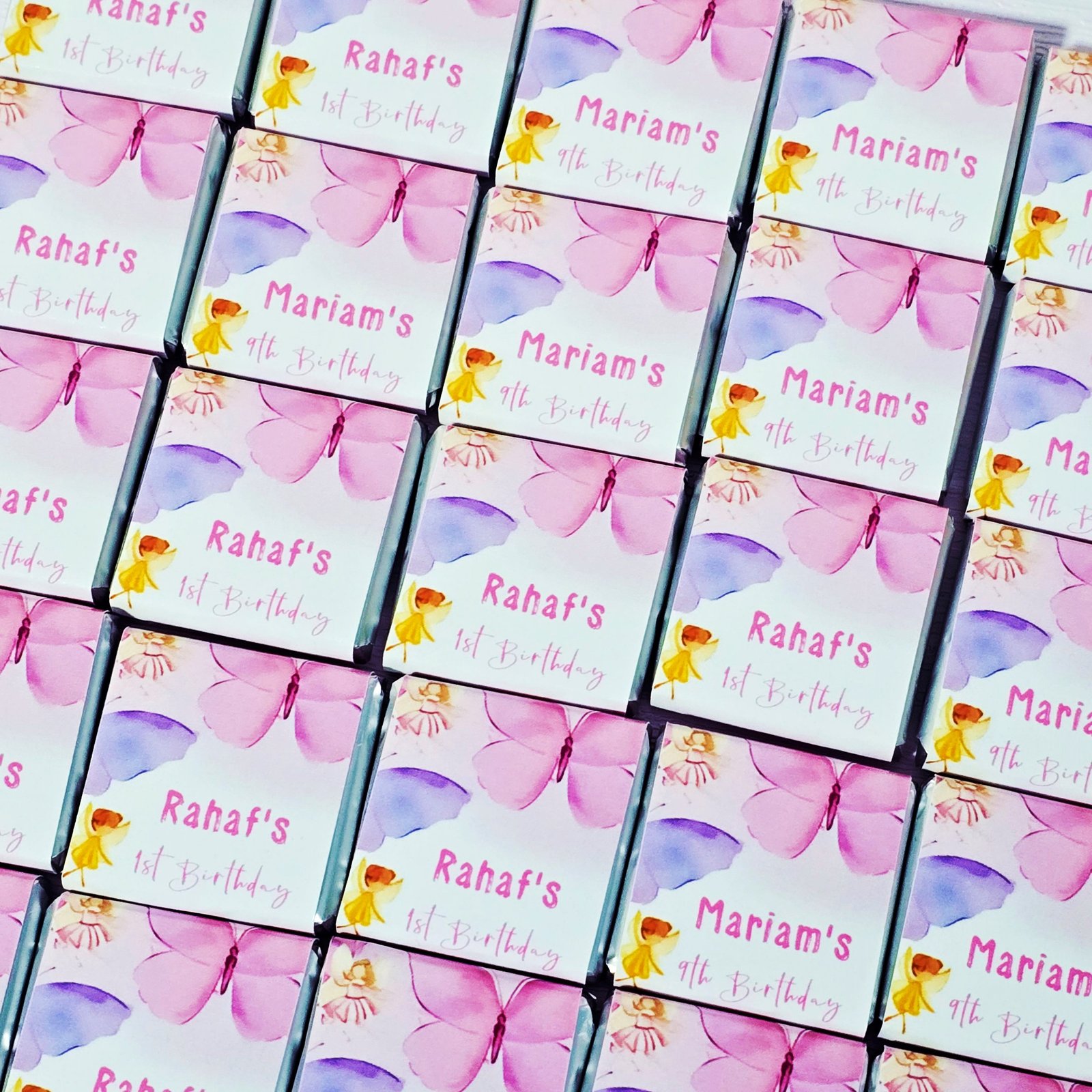 All our products include a free personalised label, professionally designed to match your theme.🍫 Product Highlights