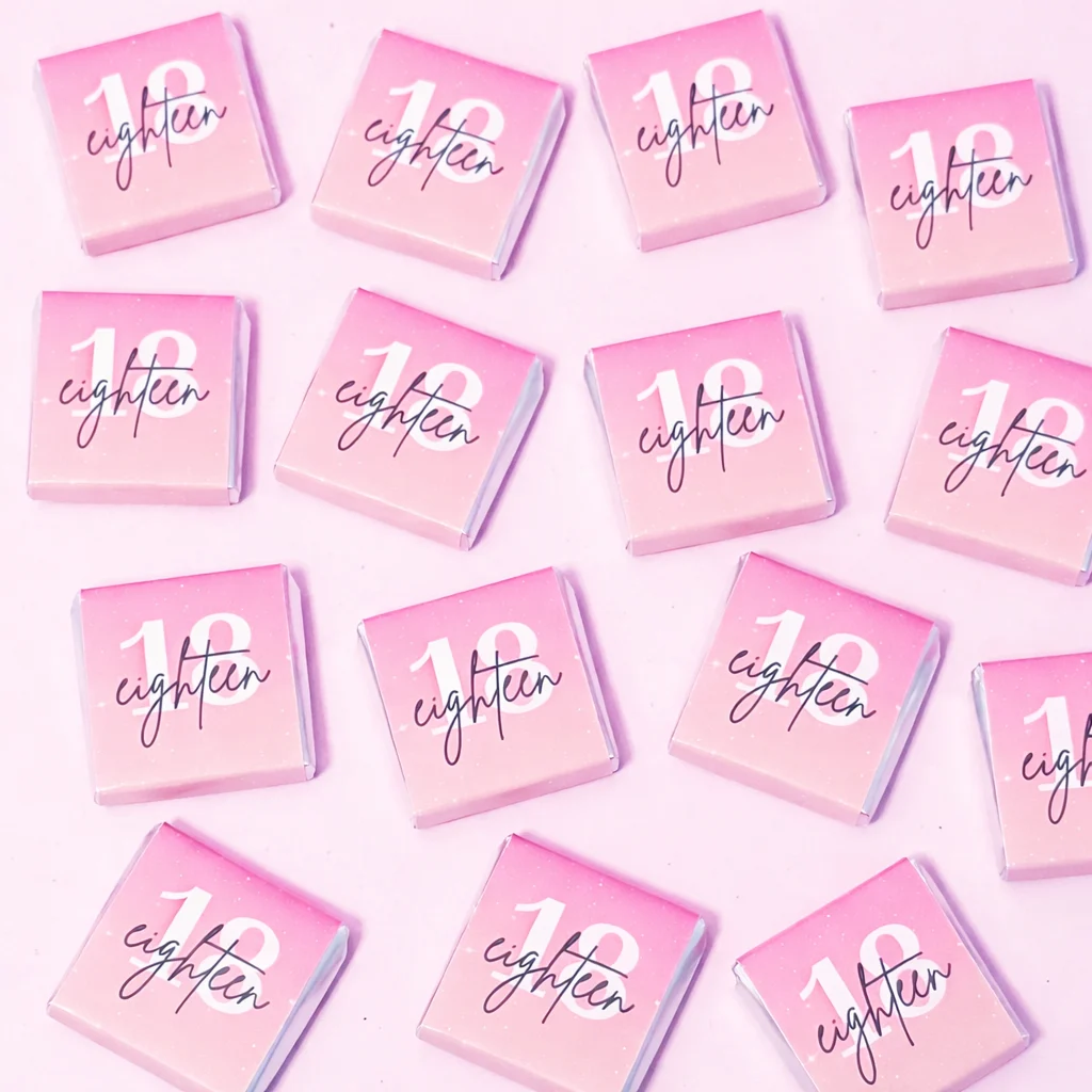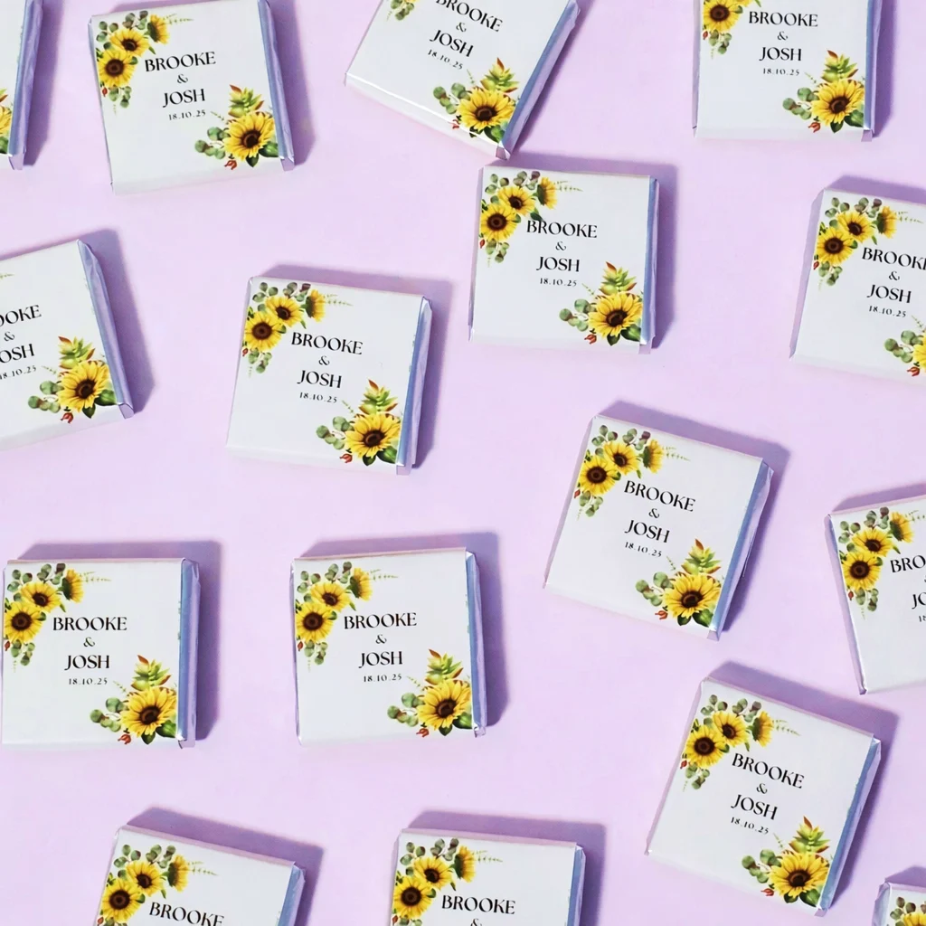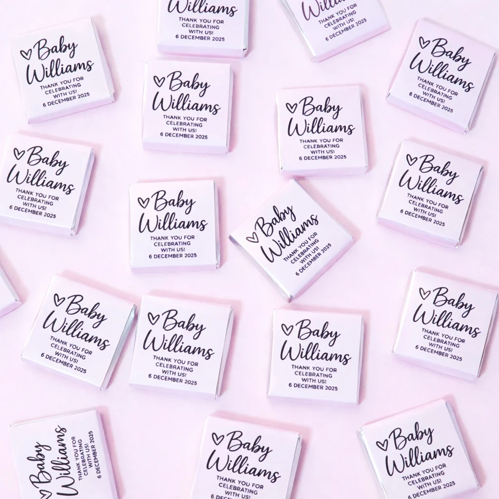 Personalised mini chocolates are a simple way to add a neat and thoughtful touch to your celebration. Each square chocolate is individually wrapped with a wrapper designed to match your event.