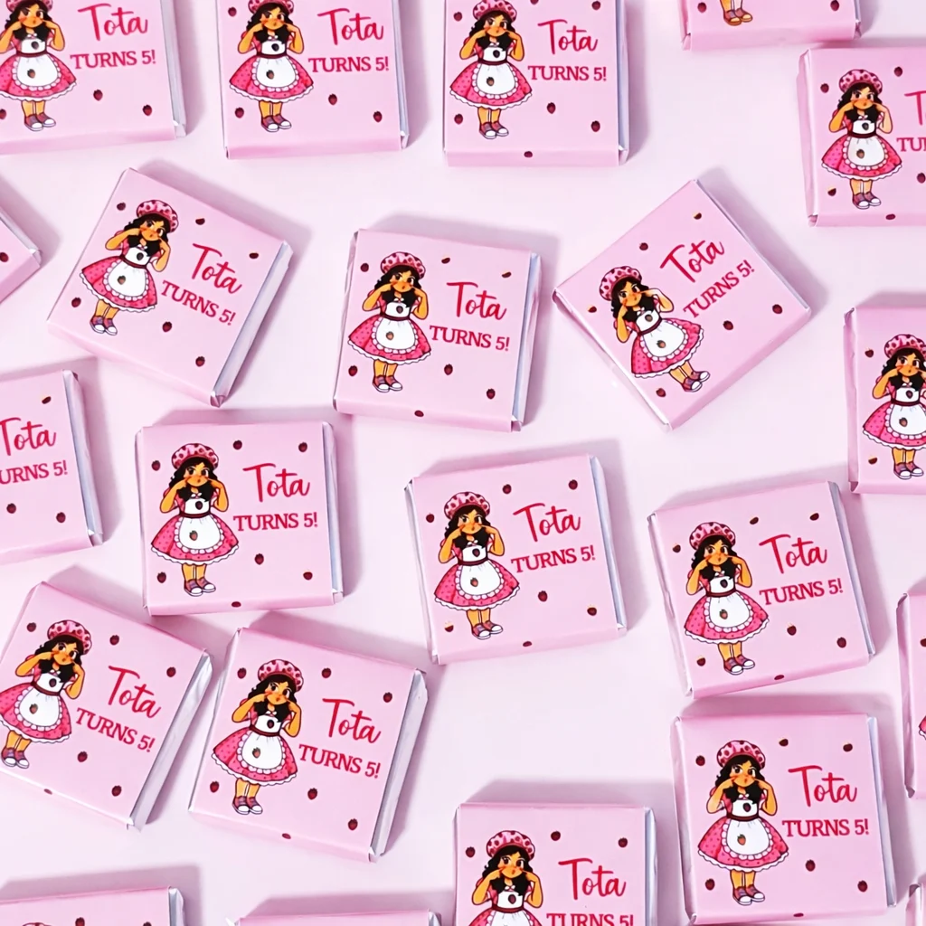 Simply choose your preferred mini chocolate option, then add your name, age, theme, event details or branding requirements at checkout. Our team will design the wrapper to match your event or theme.